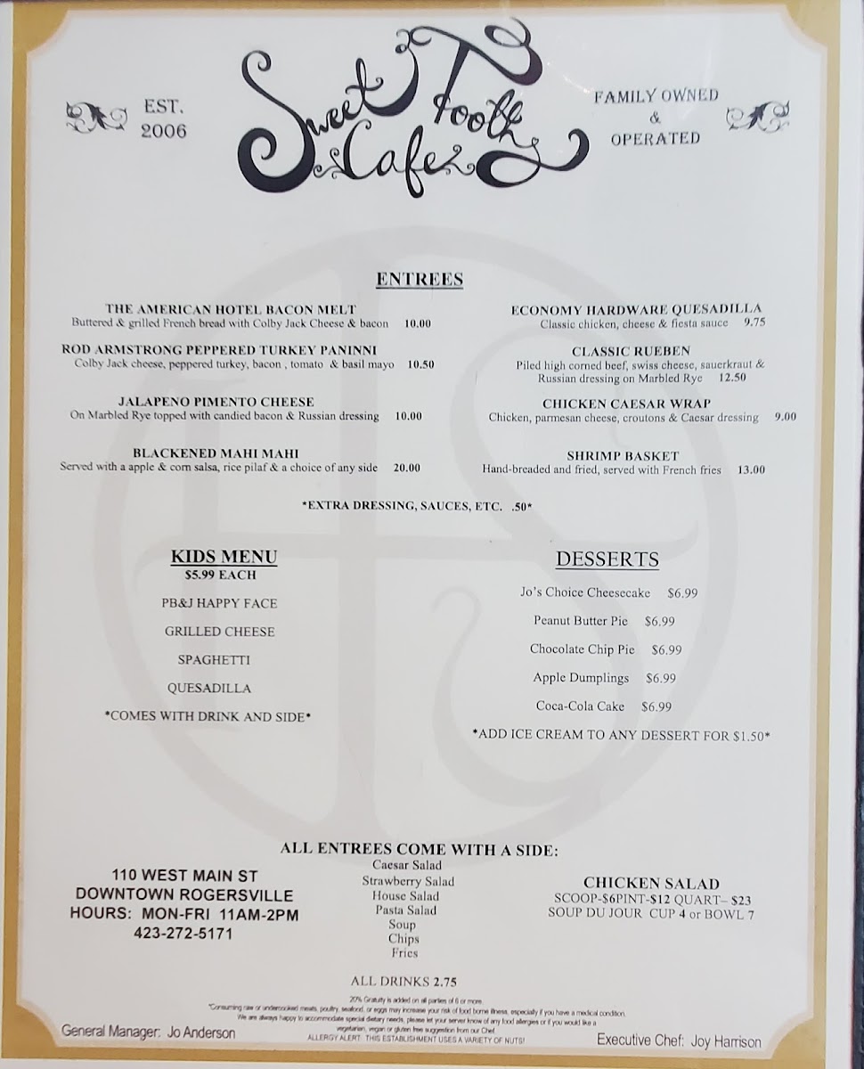 Welcome to Sweet Tooth Cafe, a delightful gem nestled in the heart of Rogersville, TN. This charming cafe, located at 110 W Main St, Rogersville, TN 37857, is a must-visit spot for anyone seeking a cozy dining experience paired with outstanding comfort food and a warm atmosphere. With its inviting decor and friendly staff, you'll feel right at home the moment you walk through the door.